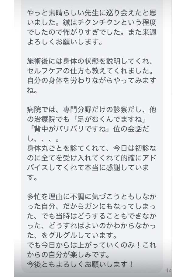 その人本来の体と心を取り戻してほしいと思っています。